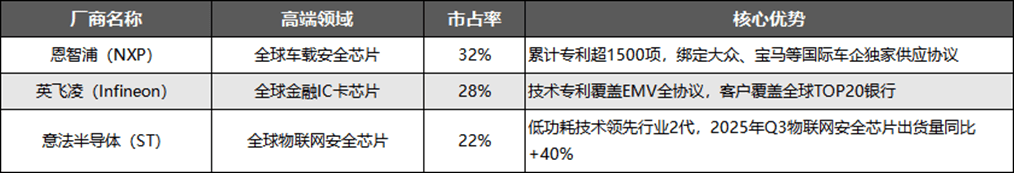 国际竞争格局呈现“外资主导高端市场”的特征,据中国半导体协会2025年调研数据,全球车载安全芯片高端市场外资品牌占比达85%。对比国际头部厂商,紫光国微在国内市场具有本土化服务和政策支持优势,但在高端技术专利和国际客户绑定方面仍有差距,例如公司车载安全芯片专利数量约为恩智浦的1/3,国际车企客户覆盖仅为恩智浦的15%(公司2025年投资者关系活动记录表披露)。