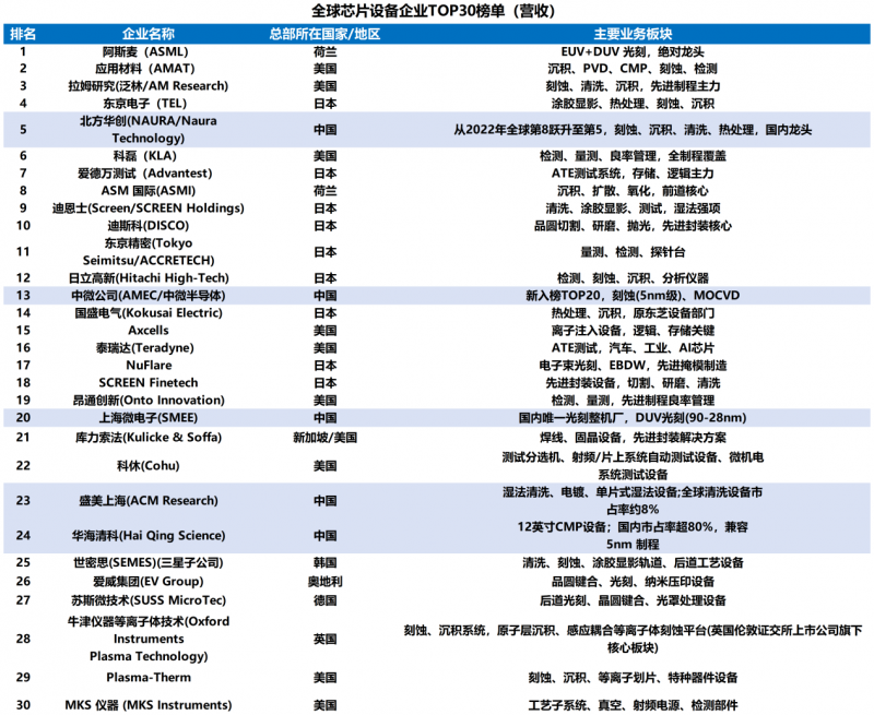 回顾过去几十年,从“瓦森纳协定”的严防死守,到近年应用材料、阿斯麦、东京电子等美、日、荷等巨头构筑的铜墙铁壁,中国半导体设备行业一直在夹缝中艰难求生。中国企业从“榜上无名”到“三分天下有其一”,这不仅仅是营收数字的增长,更意味着中国半导体产业在全球产业链中占据了不容小觑的地位。
